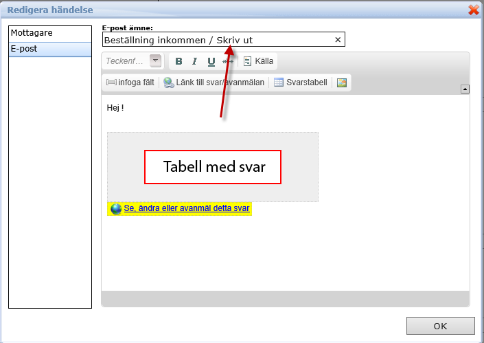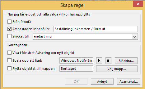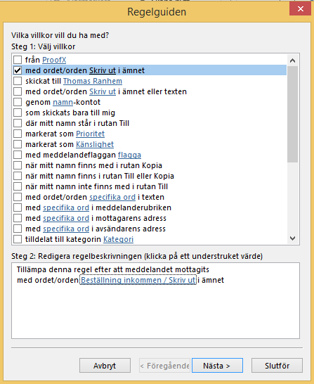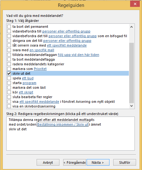 Detta innebär att alla mejl som kommer in med denna rubrik kommer att skrivas u direkt på skrivaren.