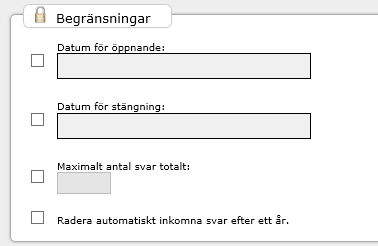 när enkäten inte längre finns tillgänglig för ifyllnad. Datum och klockslag anges via hjälpfunktion. |