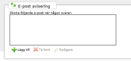 Så fort någon svarar kan detta aktivera en eller flera aviseringar. Exempelvis vill man att vid en anmälan att respondenten skall kunna få ett personligt svar med de uppgifter som dom har angivit som svar. Samtidigt går det att skicka en avisering till en ansvarig som är förutbestämd eller via ett fält i formuläret. Möjligheterna är många.