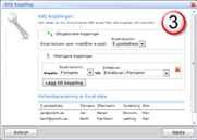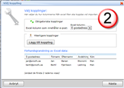 Klicka på ”Lägg till koppling” om fler kolumner skall kopplas till i dokumentet. Den vänstra delen är i excel och den högra gäller formuläret. |