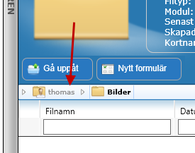 Välj en mapp att gå till genom att klicka på mappens namn.