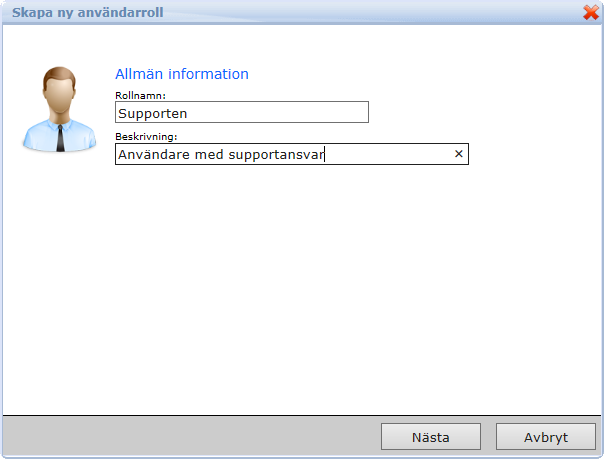 Användare som sätts som Supportroll blir medlemmar i gruppen Supporten och tilldelas systemrättigheterna Logga in i administrationsgränssnittet, Ändra gruppmedlemskap, Återställ lösenord.