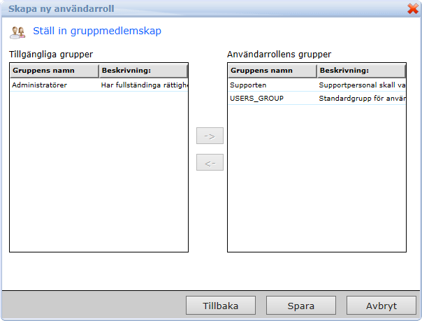 Hjälp > User interface > Explorer > Administrativa verktyg > Roller > Välj gruppmedlemsskap