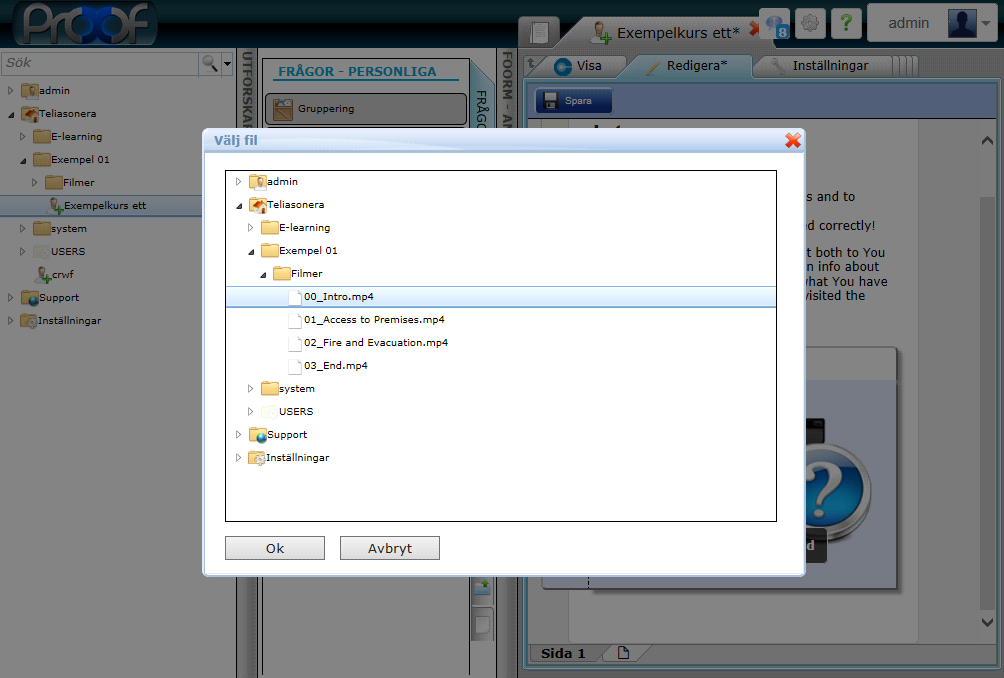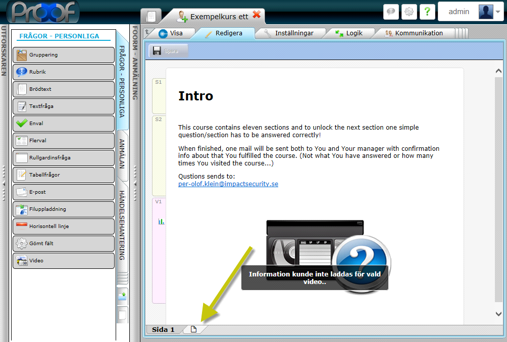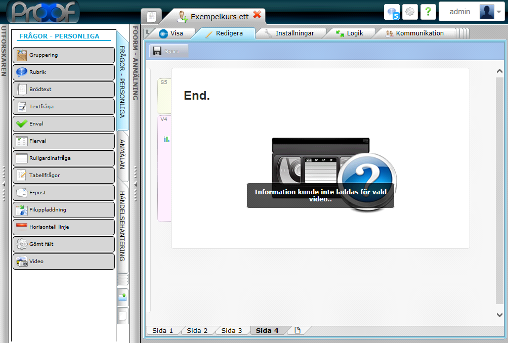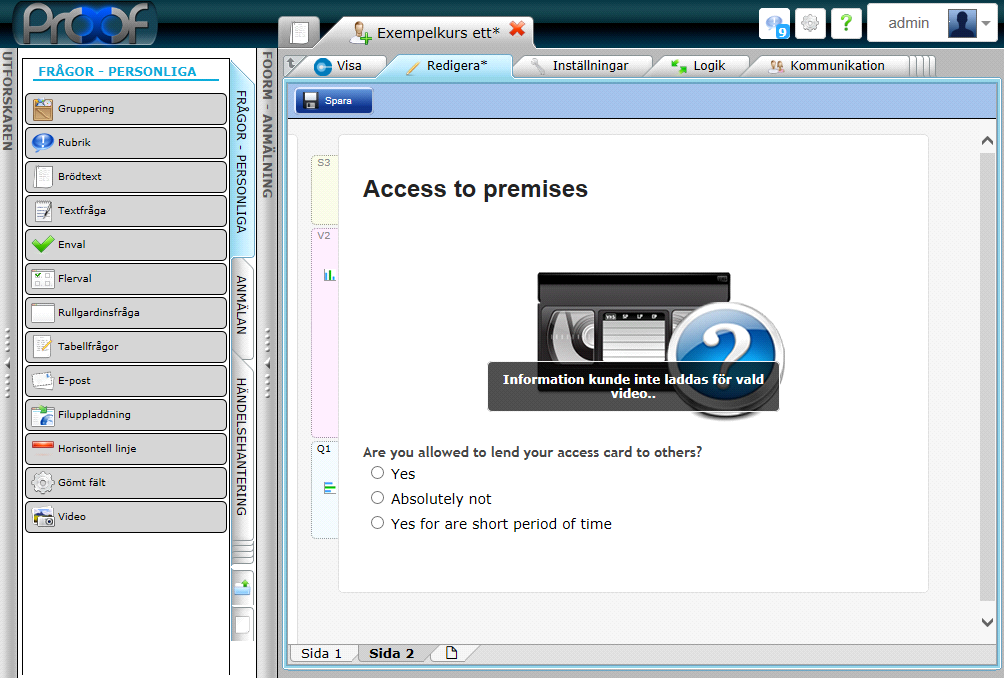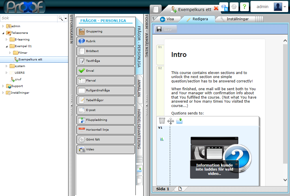 Videofrågan har nu en videofil kopplad till sig. I vårt exempel kunde ProofX ej bearbeta filen eftersom ProofX medieserver är avstängd. När du gör det här kommer du se en annan text i videofrågan när du kopplat den till en video.