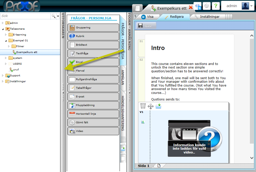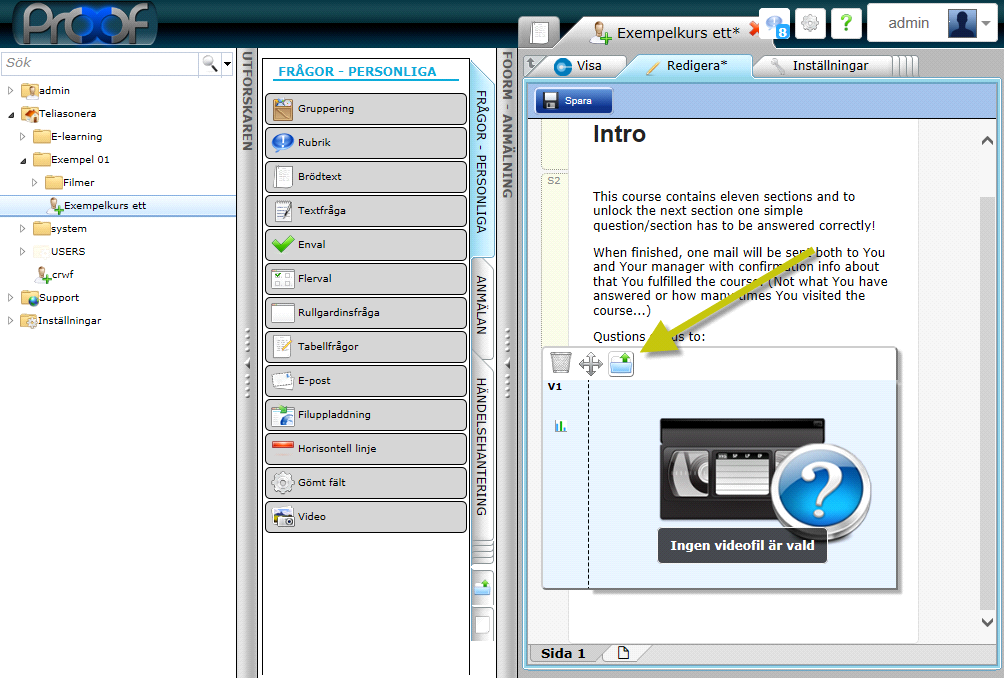 Markera Video i FRÅGOR – PERSONLIGA. Klicka-dra Video till arbetsytan.
