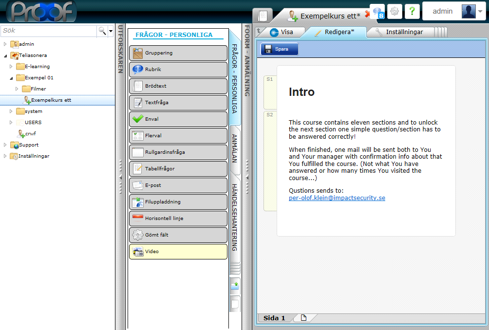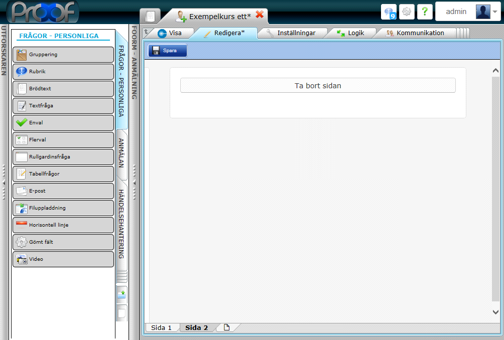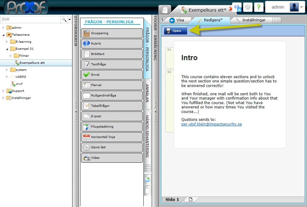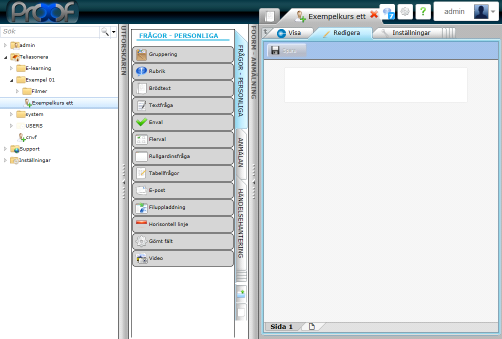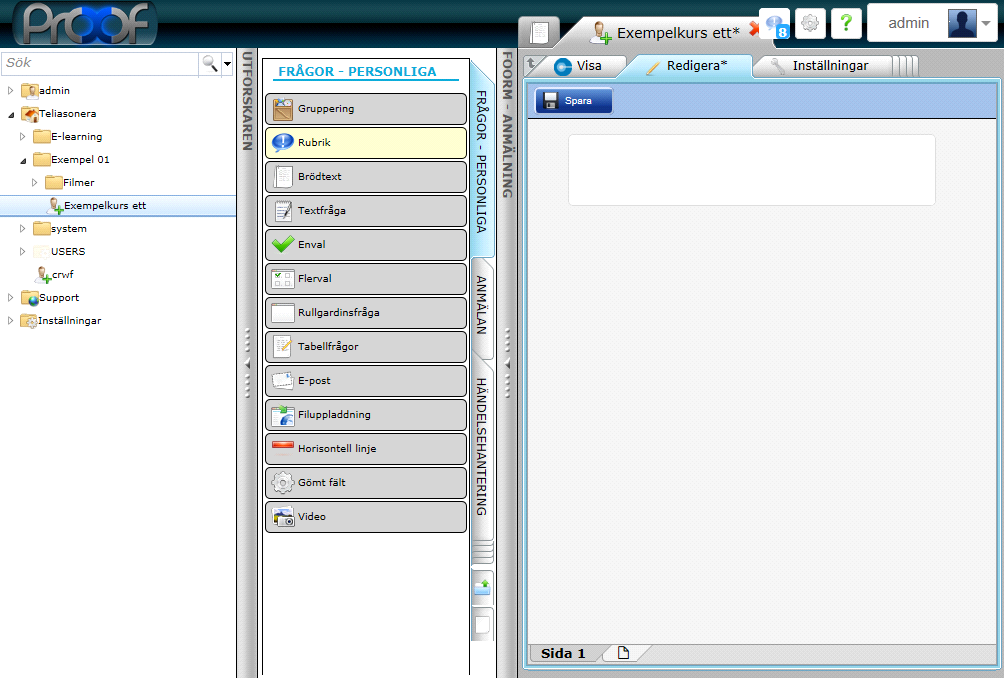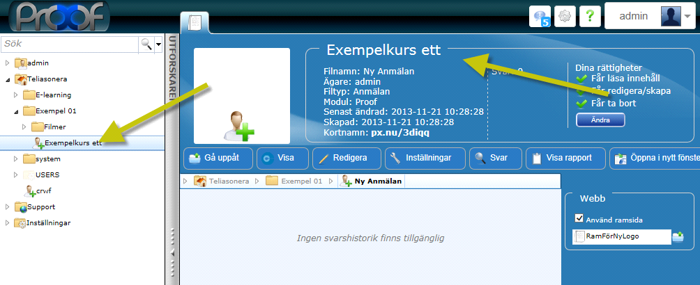 Döp formuläret, antingen i textfältet i högra delen av webbläsarfönstret, eller i Utforskaren (högerklicka fungerar). I den här lathunden döper vi frågeformuläret till Exempelkurs ett.