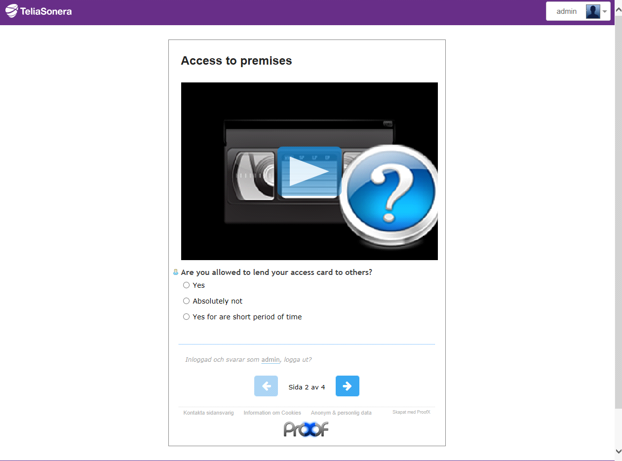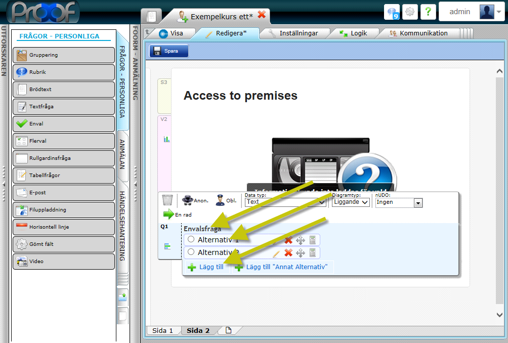 I vårt exempel använder vi frågetext och frågealternativ som passar till filmen Access to premises.