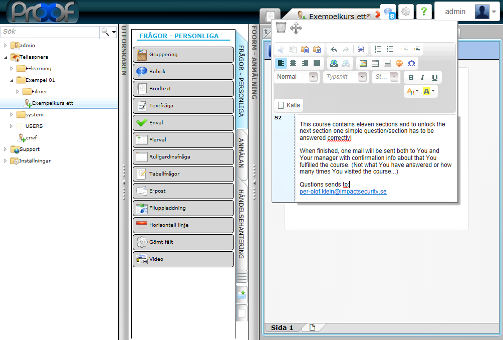 Hjälp > Fast guides > E-learning > Frågeformuläret