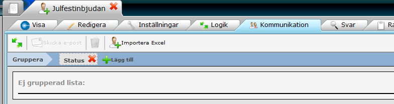 22. När vi går in på Kommunikation så syns det om någon svarat. Vidare går det att skicka epost bara till de som Svarat eller till de som Ej svarat. Om man vill kan man lägga till fler kategoriseringar med Lägg till vilket gör att man kan andra parametrar för att rikta utskick.