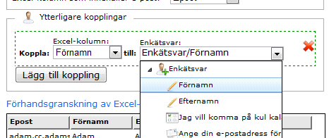 10. När förnamn och efternamn är kopplade till motsvarande frågor i enkäten ser dialogrutan ut såhär: