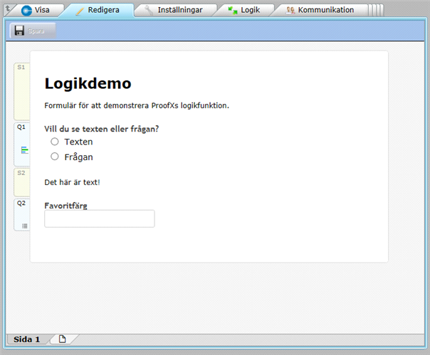 Tryck på spara om du inte redan gjort det. Logikinställningarna är nu klara och vi kan testa logiken genom att öppna formuläret i nytt fönster.