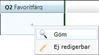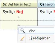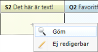 - Tryck på plustecknet (+) för de frågor som skall vara gömda från start, Det här är text!... och Vilken är din favoritfärg... och Göm.